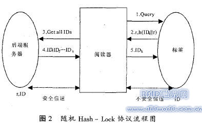 作為Hash—Lock協議的擴展,隨機Hash—Lock協議解決了標簽定位隱私問題。采用隨機Hash—Lock協議方案,閱讀器每次訪問標簽的輸出信息都不同。