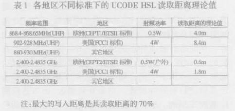 表1 各地區(qū)不同標(biāo)準(zhǔn)下的UCODE HSL 讀取距離理論值