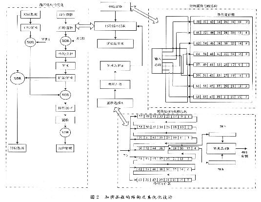 DES密碼體系CFB方式的設計核心是加密函數,其結構以及優化方案可由圖2所示體系給出。主要包括初始置換、逆初始置換、循環結構以及置換選擇A的優化設計。