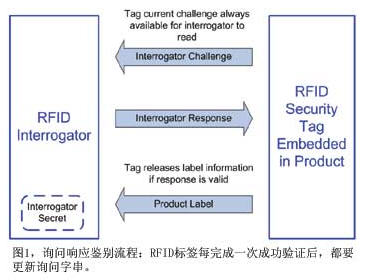 RFID 標(biāo)簽在允許訪問其中存儲(chǔ)的標(biāo)識(shí)信息前應(yīng)鑒別讀寫器的身份。如果僅需鑒別讀寫器,選擇詢問/響應(yīng)鑒別方案即可;如果需要更新保存在RFID標(biāo)簽內(nèi)的信息,就得選擇雙向詢問/響應(yīng)鑒別方案 (相互鑒別),即驗(yàn)證標(biāo)簽是真正合法的,而不是某種想竊取信息的不法密探。