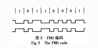 FM0編碼返回與CRC:FM0編碼如圖5,編碼時設計一個反相器,01翻轉,0的時候讓輸出變號,1的時候根據碼值變號,即碼值0輸出變號,碼值1輸出不變。在編碼返回值的同時根據需要完成對EEPROM的讀寫操作。最后加上翻轉了的CRC值。