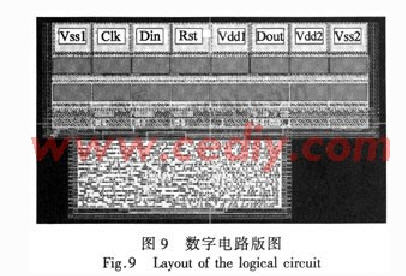 自動布局線設計的版圖如圖9所示,有三個輸入,分別為Clk、Din、Rst,一個輸出為Dout。版圖通過了DRC(設計規則檢查)和LVS(版圖與電路圖一致比較),正在流片中。