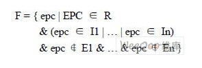 其中,R 為EPC 數據源集合,Ii 為EPC 集中符合第i 個includePattern 的數據集,Ei 為EPC集中的符合第i 個excludePattern 的數據集。