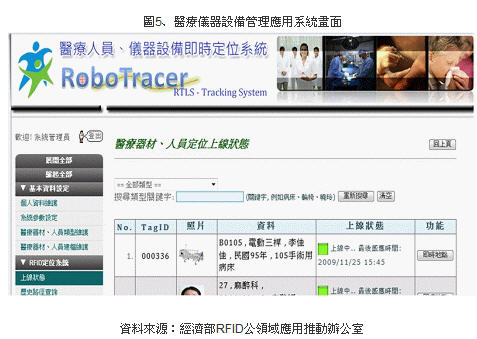 國內主動式RFID的產品在近五年已歷經不同的教學及區域醫院的應用,而被動式RFID在資產管理上,也有相對應的金屬標簽產品;而在定位系統開發方面,亦有業者積極投入,所謂的即時定位系統(Real-Time Location System, RTLS)將是全球主動式RFID應用的趨勢。透過此次的概念驗證,將可整合我國業者在軟硬體的實力,為新一代資產或人員定位管理整體解決方案鋪路。