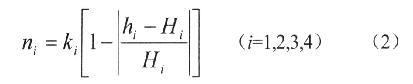 式中:Hi一經驗值;ki—加權系數;hi=1一濕度值。hi=2一糧食濕度與倉濕的差值。hi=3一糧食濕度與平均值的差值。hi=4一糧食濕度梯度值。