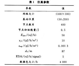 仿真中,使用Matlab作為仿真平臺,采用與文獻(xiàn)[3]相同的能量消耗模型。仿真參數(shù)如表1所示。