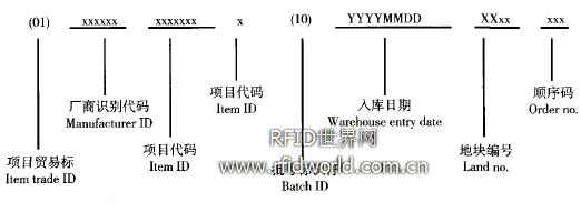 追溯鏈條上每個參與對象都是追溯系統的關鍵點;一旦產品出現問題,是否能夠查找到具體的問題來源和正確實施產品回收取決于參與對象的記錄是否健全。為確保追溯的完整性,追溯鏈條上每個參與對象都進行了唯一編碼。在種植階段,對種植者與地塊都進行編碼,地塊編碼以兩位基地數字加兩位地塊號組成,如農墾基地第18個地塊用0318表示;為每一位種植者發放一個RFID卡,每張RFID卡唯一對應1位種植者及其管理的地塊:RFID卡能快速準確地為手持機提供自動識別功能,操作快捷方便,同時在蔬菜基地的惡劣環境中即使RFID卡部分磨損也不會影響手持機的識別效果。在企業管理中,企業管理人員同樣有工作編碼,如包裝人員的編碼用包裝的拼音首字母加數字代表,如BZ12,避免同名的干擾。蔬菜脫離土地后按照批次進行編碼,以采收日期、地塊號和采收順序組合成批次號,可以唯一確定每一批蔬菜;可追溯碼對應批次號是根據中國EAN.UCC系統應用標識符國標《GB/T 16986.2003》設計的,見圖2所示。