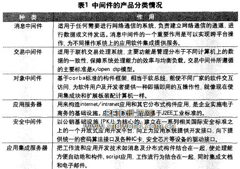 RFID中間件可以所起作用不同,分為消息中間件、交易中間件、對象中間件、應用服務器、安全中間件等 如表1所示,給出了按作用進行中間件分類的情況。