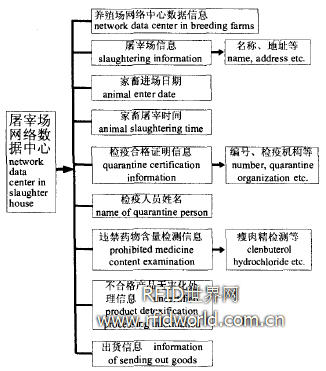 (3)肉類加工廠網絡數據中心該部分主要是在養殖場和屠宰場網絡數據的基礎上,增加加工廠信息、進出加工廠時間和產品保質期等相關信息即可。