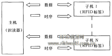 RFID系統(tǒng)的一個(gè)優(yōu)點(diǎn)就是多個(gè)目標(biāo)識別。在射頻識別系統(tǒng)工作時(shí),在讀寫器的作用范圍內(nèi),可能會有多個(gè)射頻標(biāo)簽同時(shí)存在。在多個(gè)讀寫器和多標(biāo)簽的射頻識別系統(tǒng)中,存在著兩種形式的碰撞方式:一種是同一標(biāo)簽同時(shí)收到不同讀寫器發(fā)出的命令,另一種是一個(gè)讀寫器同時(shí)收到多個(gè)不同標(biāo)簽返回的數(shù)據(jù)。第一種情況在實(shí)際應(yīng)用中要盡量避免,本文主要考慮實(shí)際系統(tǒng)中最容易出現(xiàn)的情況,即一個(gè)讀寫器和多個(gè)標(biāo)簽的系統(tǒng)。在由一個(gè)讀寫器和多個(gè)射頻標(biāo)簽組成的系統(tǒng)中,存在著兩種不同的基本通信形式:從讀寫器到射頻標(biāo)簽的通信和從射頻標(biāo)簽到讀寫器的通信。從讀寫器到射頻標(biāo)簽通信時(shí),讀寫器發(fā)送的數(shù)據(jù)流同時(shí)被所有標(biāo)簽接收,而這些信息是由一個(gè)無線電廣播發(fā)射機(jī)發(fā)射的,這種通信方式也稱為無線電廣播。從射頻標(biāo)簽到讀寫器的通信也稱為多路存取,即在讀寫器的作用范圍內(nèi)有多個(gè)射頻標(biāo)簽的數(shù)據(jù)同時(shí)傳送給讀寫器。無線電通信系統(tǒng)中多路存取一般采用以下方法把不同的信號互相分開:空分多路法(Space Division Multiple Access,SDMA)、時(shí)分多路法(Time Division Multiple Access,TDMA)、頻分多路法(Frequency Division Multiple Access,F(xiàn)DMA)、碼分多路法(Code Division Multiple Access,CDMA)。本文采用時(shí)分多路法對多個(gè)標(biāo)簽進(jìn)行識別,讀寫器控制采用輪詢法。