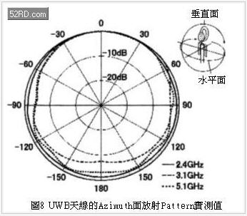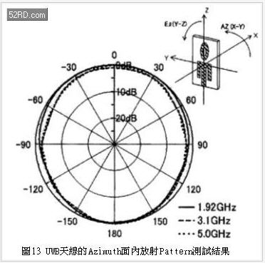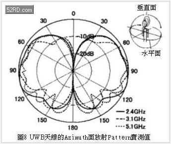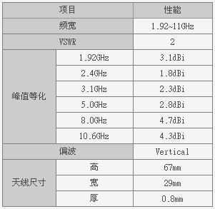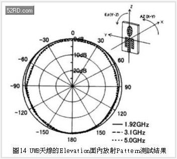 根據圖9的Elevation面的放射Pattern顯示,本UWB天線可以獲得接近8字形的指向性,而且圖8與圖9測試結果與圖6的計算結果非常一致;表1是本UWB天線特性一覽。