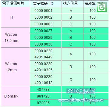 由上表之測試結(jié)果可知,標(biāo)簽之植入位置對于讀取效果并無影響;標(biāo)簽在植入魚體后,在魚隻的正常活動狀態(tài)下,均可被成功讀取。