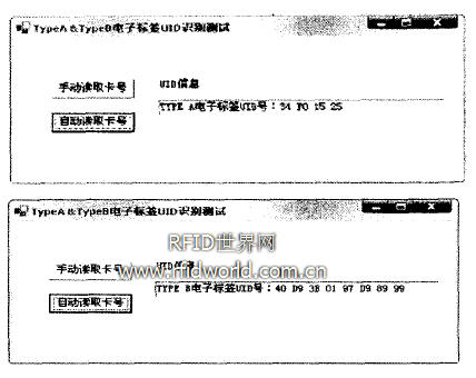 圖5給出了識別TYPE A & B兩種電子標簽UID的測試結(jié)果。