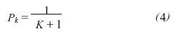 n>1時(shí)發(fā)生碰撞,令發(fā)生碰撞后所有爭(zhēng)用信道的射頻卡自行產(chǎn)生推遲時(shí)長(zhǎng)kTA,其中k為射頻卡時(shí)延隨機(jī)因子,它是[0,K]內(nèi)均勻分布的隨機(jī)數(shù),K為讀寫(xiě)器設(shè)計(jì)給定的時(shí)限,k、K均為正整數(shù).產(chǎn)生k的概率為