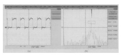 圖6 環形振蕩器的輸出頻率測試結果 (a)時域測試結果; (b)頻域測試結果