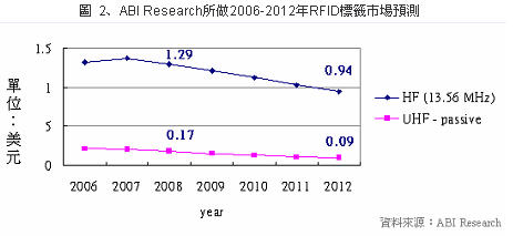 圖2、ABI Research所做2006-2012年RFID標簽市場預測
