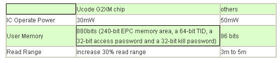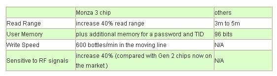 截至目前為止,已有數家RFID標簽IC廠商推出數款新形式的RFID標簽IC,用以提升標簽之讀取效能。由這些新IC的規格中,可以隱略嗅出國際大廠目前的研發方向的確是朝item-level的應用方向前進。茲以大廠近期發表產品與現行IC做差異分析,如下表所示: