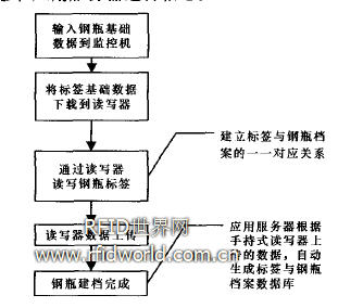 RFID標(biāo)簽ID號(hào)與鋼瓶的唯一編號(hào)相對(duì)應(yīng),采用可讀寫標(biāo)簽以記錄鋼瓶的基本信息(以在用鋼瓶普查登記表 為例,包括鋼瓶檢驗(yàn)、充裝、發(fā)放相關(guān)信息,如下次檢驗(yàn)時(shí)間、充裝時(shí)間、發(fā)放時(shí)間、發(fā)放地址等)。通過(guò)讀寫器(手持式或固定器)對(duì)鋼瓶標(biāo)簽信息進(jìn)行識(shí)別和數(shù)據(jù)寫入,進(jìn)而與監(jiān)控機(jī)、數(shù)據(jù)中心和應(yīng)用服務(wù)器進(jìn)行信息交互。