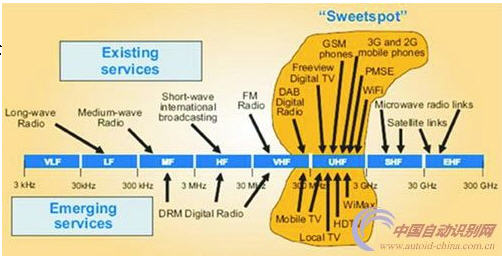 典型的射頻識別系統(tǒng)工作頻率為LF(低于135)、HF(13.56MHz)、433MHz、UHF(840~ 960MHz)、2.45GHz和5.8GHz。其他頻率的RFID應用一般屬于專業(yè)應用的范疇。