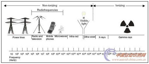 頻率(F):電磁輻射對人體影響研究的頻率范圍如圖3所示。典型情況下,研究的關注點分為兩段:射頻輻射(30kHz~300MHz)和微波輻射(300MHz~300GHz);