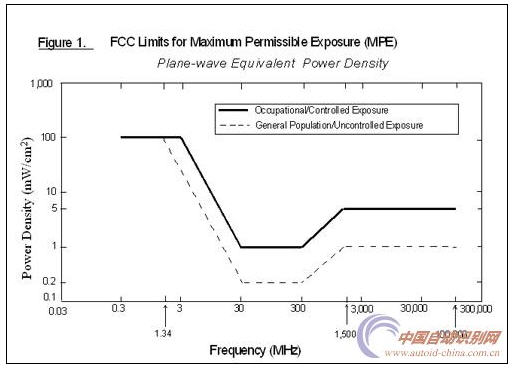 圖4 美國電磁輻射人體暴露接觸限值(注:引用圖)