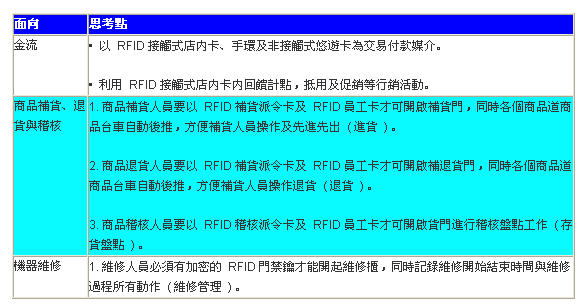 表1、RFID多功能智慧型無人店鋪建議之商品設(shè)計(jì)概念表