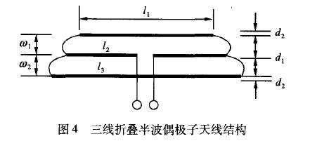 RFID標簽天線的設計由所選的標簽芯片決定,為了優化標簽天線的傳輸性能,天線的輻射電阻必須適應標簽芯片的阻抗特性。天線的設計一直與50Ω或75Ω的標簽芯片相匹配,隨著RFID技術的發展,一些標簽芯片的阻抗變得任意化,從而天線的設計也需要滿足不同芯片的阻抗特性 。圖4給出了一種三線折疊半波偶極子天線的設計結構,該結構可以使天線得到較高的輸人阻抗,從而更方便與標簽芯片達到阻抗匹配。
