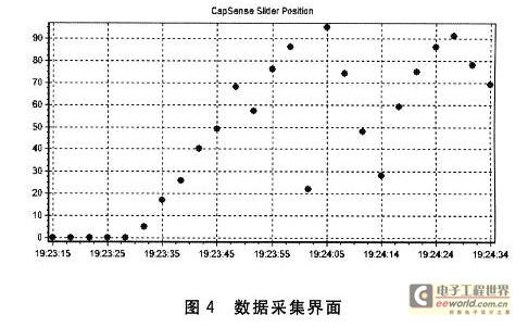 按照上述方法,再結(jié)合Hub的PSoC程序中定義的命令和:Bus Hound抓包得到的結(jié)果,就可以對FTPC設(shè)備中的Hub執(zhí)行相應(yīng)的操作了,如進(jìn)入綁定狀態(tài),讀取綁定結(jié)果,讀取接收到的消息等。節(jié)點綁定成功之后,即可查看實時的數(shù)據(jù)采集情況,包括數(shù)據(jù)采集的時間和滑塊位置值等,如圖4所示。