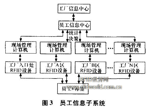 員工信息子系統(tǒng)如圖3所示,可以方便地實(shí)現(xiàn)員工出入工廠管理,考勤數(shù)據(jù)采集、統(tǒng)計(jì)和信息查詢以及廠區(qū)定位等功能。從管理層的角度考慮,簡化了管理結(jié)構(gòu),提高。廠管理的集中度,使管理層能夠集中、全面和隨時(shí)了解員工的有關(guān)情況。另外,分散的靜態(tài)手工資料向集中的動(dòng)態(tài)化信息資料的轉(zhuǎn)化,提高了管理層次,改善丫管理效率,也為工廠的事后稽查、個(gè)體員工考察和整體人力資源政策的制定提供了參考依據(jù)。