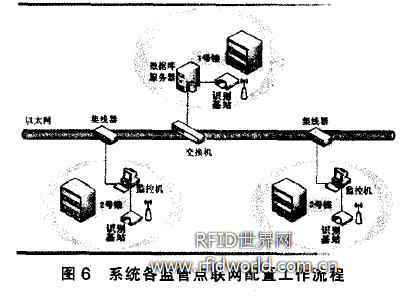根據實際設備選型,識別基站有以太網接口和RS232/485接口兩種類型,如果是RS232/485接口可以通過RS232/以太網轉換器連接到以太網絡,這樣就可以通過已經具備的以太網絡將各辦公樓之間的無線標識系統進行聯網,構成一個統一的平臺,為集中安全管理提供保障。