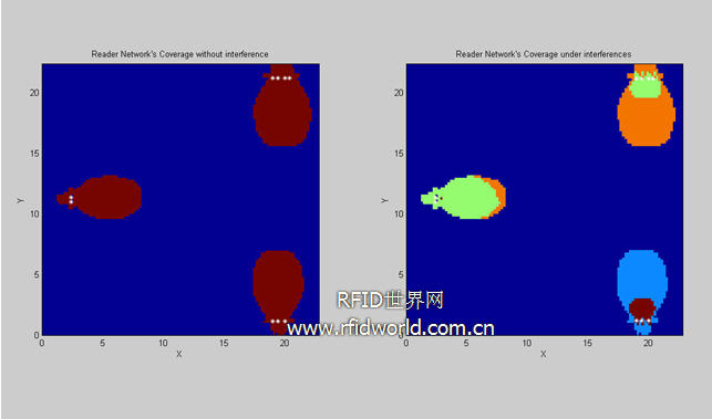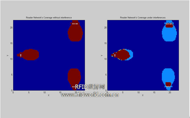 圖9是當3個reader工作在發射功率為2W,信道相同的情況下得到的區域分布圖。