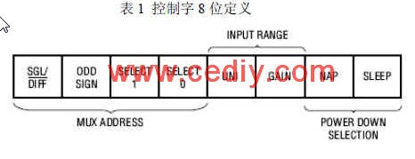 3.1 LTC1859不管是在發送系統中還是接收系統中,都是在 SCK的下降沿傳輸,上升沿被捕獲,這就要求 DSP在進行 SPI初始化時采用上升沿無延時模式。8位的控制字通過 SDI輸入,用于配置 LTC1859以進行下一個轉換,同時前一個轉換輸出在 SDO上輸出,在數據交換的末端在 CONVST上施加一個上升沿啟動被請求的轉換。轉換完成后,轉換結果將在將在下一個數據傳送周期提供。LTC1859的 8位命令控制字在首 8個 SCK的上升沿按時間順序記錄到 SDI輸入中,SDI隨后的輸入的位被忽略。控制字的 8位定義如表 1
