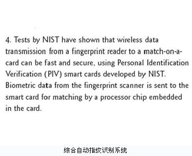 然而,指紋仍然是一個有效ID方法。美國聯邦調查局使用綜合自動指紋識別系統作為刑事逮捕和執法的數據庫。此外,美國國家標準與技術研究所(NIST)將提供其基于指紋的個人身份驗證(PIV)智能卡給進入聯邦設施的所有聯邦雇員和承包商(圖4)。