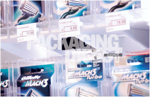 諸如吉列的Mach 3一樣貼了RFID標(biāo)簽的商品,放在裝有RFID的智能貨架上。
