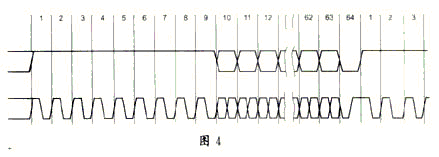 而這64位信息是通過曼徹斯特碼調制的。邏輯“1”是在一個位周期內產生一個下降沿,邏輯“0”是在一個位周期內產生一個上升沿。64位曼徹斯特碼如圖3所示。一旦發送,就將連續地發。圖4所示的就是邏輯電平與曼徹斯特碼之間的關系。從圖中可以看出64位信號連續循環輸出的情況。