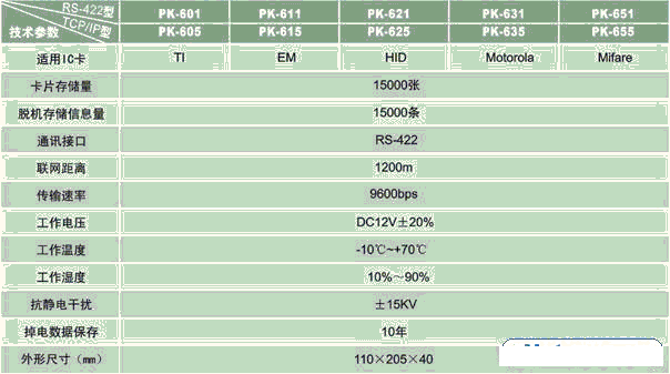 考勤機的型號、規格及參數
