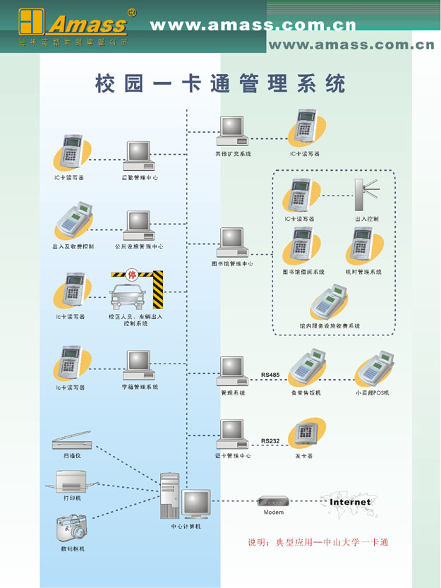 本系統采用國際上最先進的感應式智能卡技術-MIFARE技術網絡通訊采用RS485/RS232方式。整個系統具有便利的管理功能、可靠的防偽及系統保護體系、完善的數據處理功能、揮灑自如的單機功能、 強大的網絡擴展功能等特點。